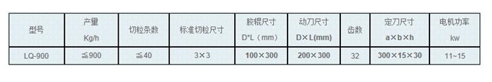 LQ-900型切粒機(jī),產(chǎn)量500-1000公斤/小時(shí),建議切粒條數(shù)20-40根。